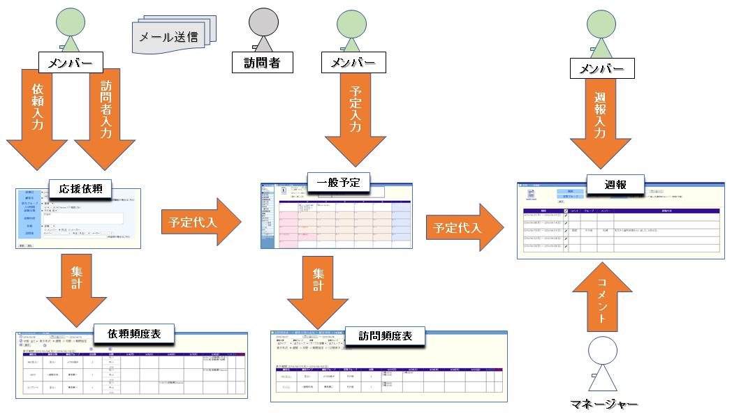- 依頼の頻度表や顧客別の訪問頻度表を本人やマネージャーが参照・更新可能
